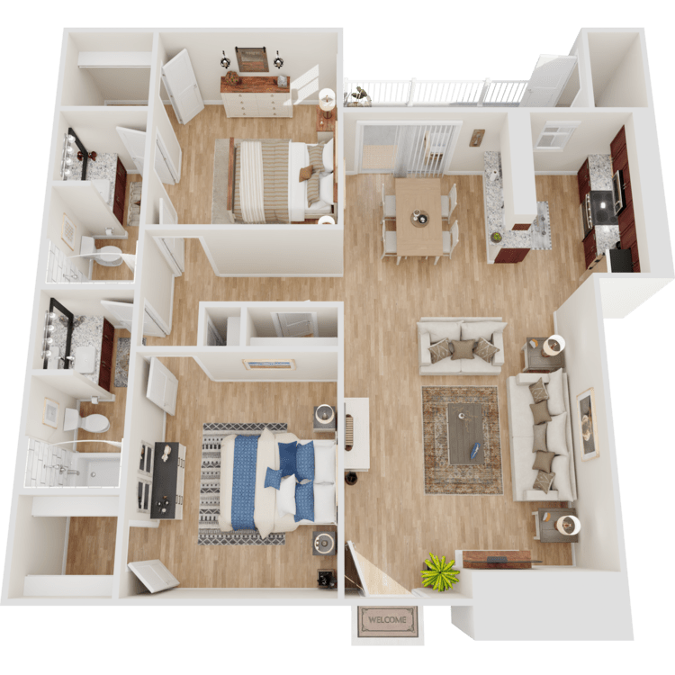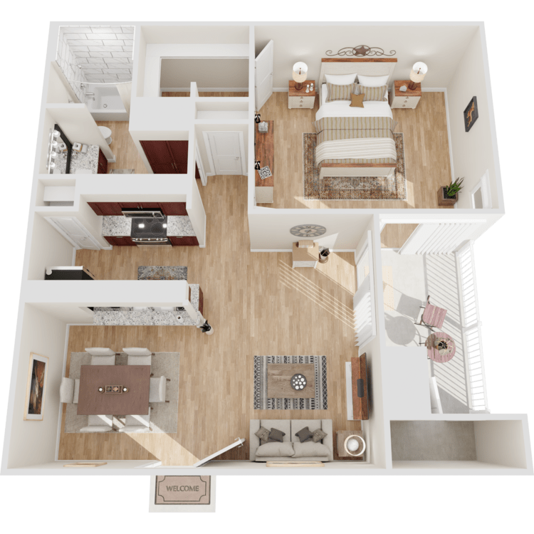 Step inside our thoughtfully designed one and two-bedroom apartments for rent, where comfort meets style. Each residence features desirable amenities such as an in-home washer and dryer and generous extra storage, complemented by your own personal balcony or patio. Select homes offer even more indulgence with spacious closets, beautifully refinished counters and cabinets, sleek new kitchen appliances, a stunning mosaic tile backsplash, modern brushed nickel hardware, and the inviting warmth of a wood-burning fireplace, creating a space you’ll love to call home.